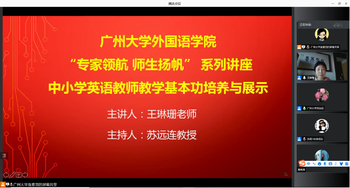 师生开展“中小学英语教师基本功培养与展示”专题讲座。讲座在腾讯会议上举行,由学院副院长苏远连教授主持,成人综艺