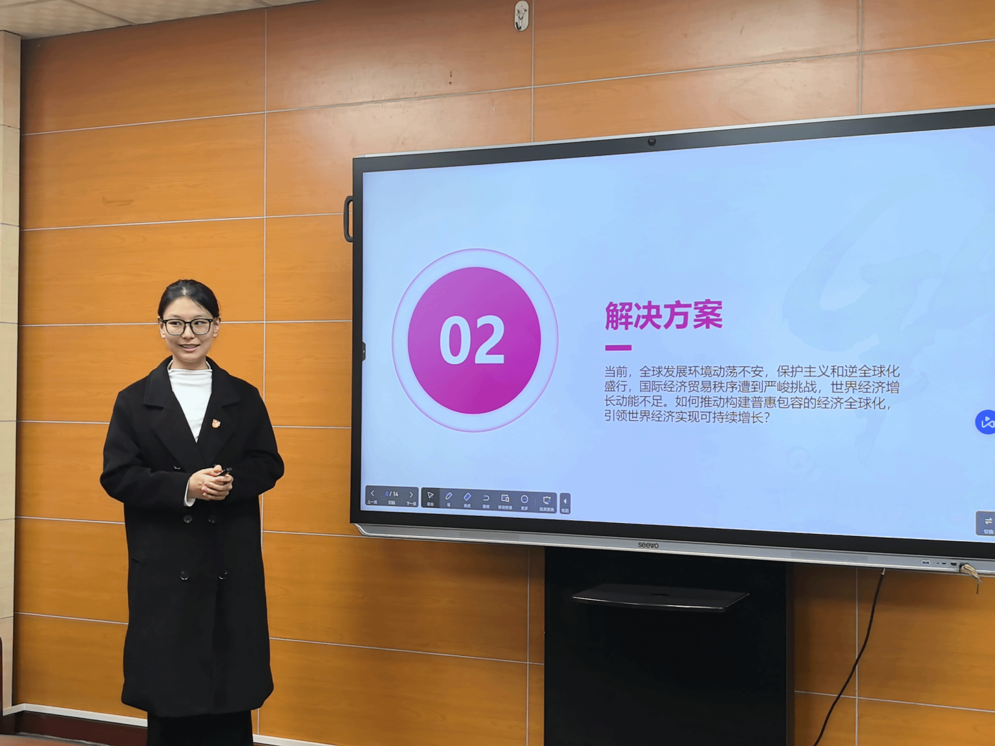 会议互动环节,汪东萍副院长结合外语学科人才培养目标,向嘉宾提问:“在全球现代化进程中,中国经验是否具备可共享的体系化特征?能否以此推动构建‘现代化共同体’,促进文明互鉴与发展共赢?”这一问题引发了现场的热烈反响,也展现了成人综艺